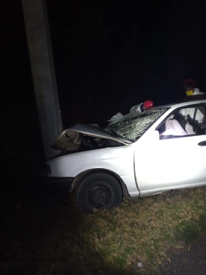 Comentan los lesionados que su vehículo Nissan tipo Tsuru blanco, se quedó sin frenos y se impactaron en un poste de luz, fueron abordados en la unidad de bomberos para trasladarlos al Hospital Regional, para su valoración médica.