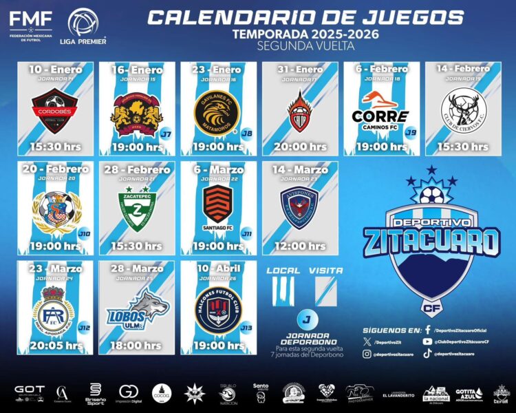 Zitácuaro, Michoacán – Este viernes 16 de enero de 2026, el Club Deportivo de Fútbol Zitácuaro recibirá a Atlético Hidalgo en el Estadio Ignacio López Rayón, en partido correspondiente a la Jornada 15 de la Temporada 2025-2026 de la Liga Premier Serie A, Grupo 2. El encuentro está programado para las 19:00 horas y representa una oportunidad clave para los locales en el arranque de la segunda vuelta del torneo.