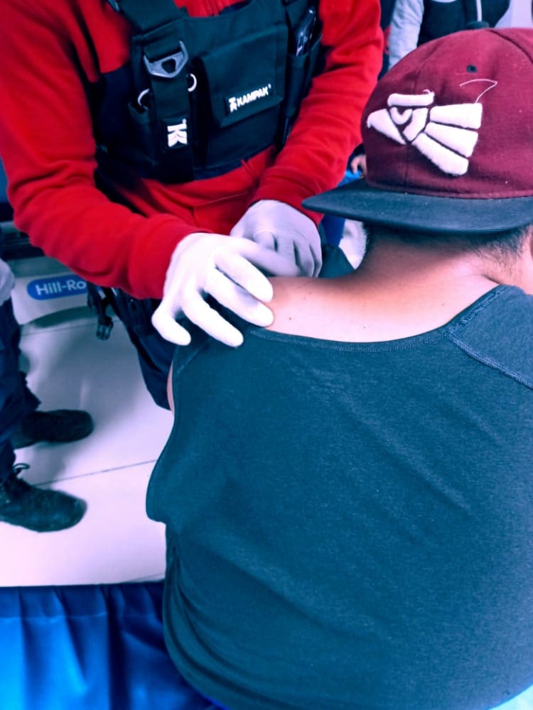 Con él viajaban dos menores de edad, el primero es masculino de 10 años de edad, quien a la valoración presentó laceración en cráneo frontal izquierdo de aproximadamente 10cm, el segundo pasajero es un menor de 8 años de edad, el cual a la valoración presentó laceración en rótula izquierda más crisis nerviosa.