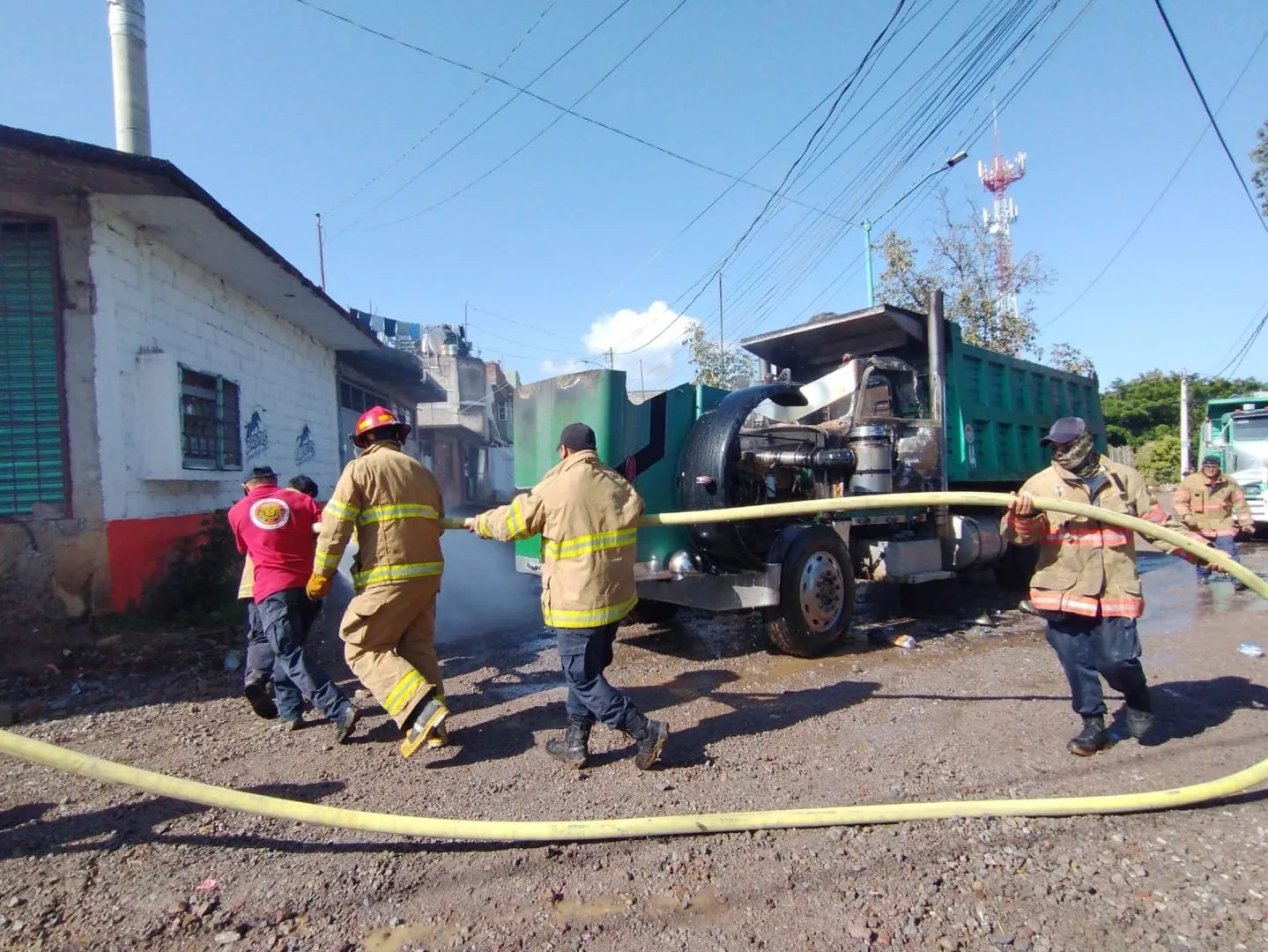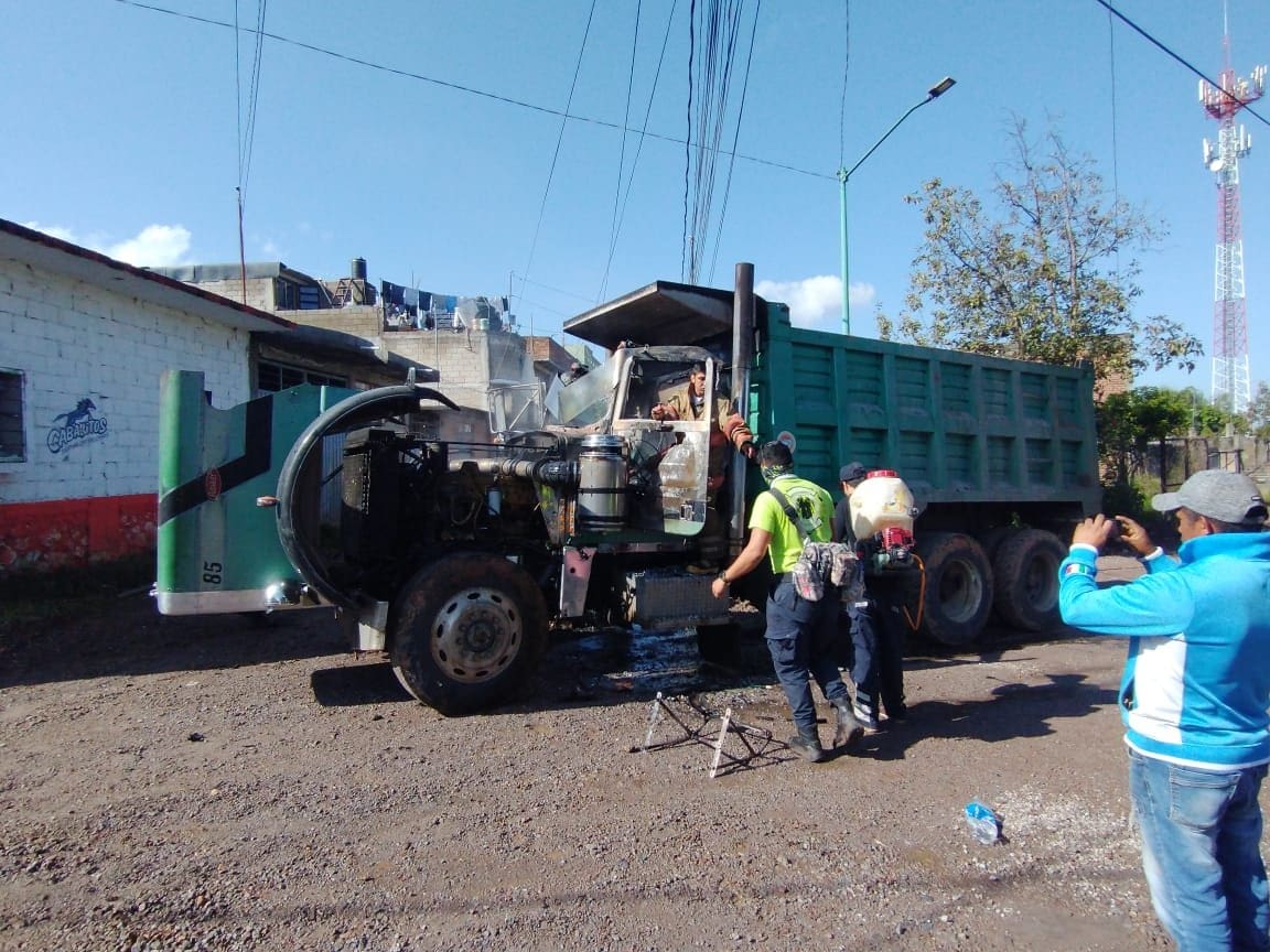 Zitácuaro. Mich. El Cuerpo de Bomberos y Protección Civil, informó que recibió una llamada telefónica reportando un incendio de un camión tipo volteo en la localidad de Pueblo Nuevo.