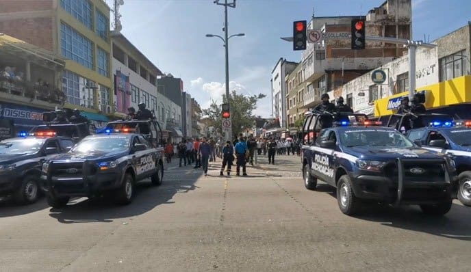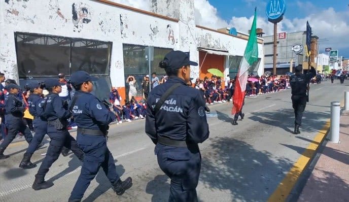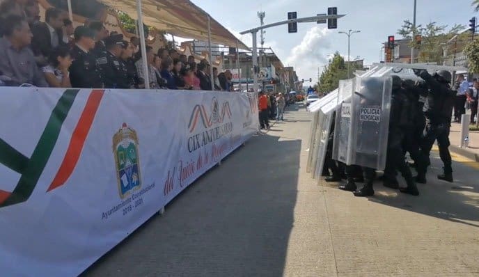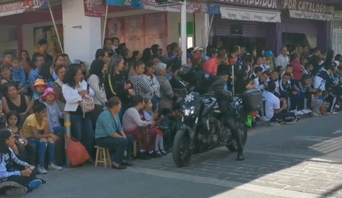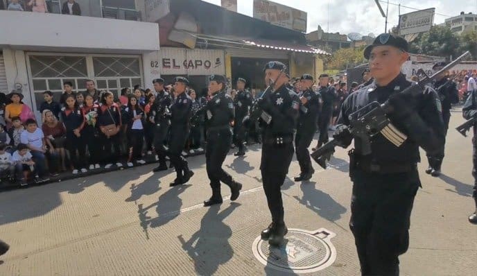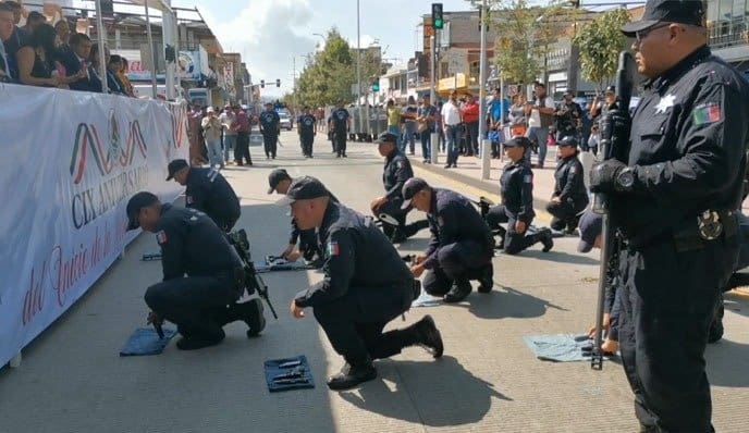 ctividades cívicas encabezadas por el Presidente Municipal, Lic. Hugo Alberto Hernández Suárez, y diversos contingentes del sector educativo, salud y empresarial.Al paso de la Escolta y Banda de Guerra de la Secretaria de Seguridad Pública Municipal a cargo del Comandante Toribio Sánchez Martínez, el contingente de seguridad realizó diversas exhibicionesEscuadrón de Fusileros, movimientos de armas y detonación de salvas.Demostración de defensa personal infantil, escuela primaria 5 de Mayo de la comunidad La Fundición.Exhibición de arme y desarme de armas de fuego tipo Bush Master y Cezca.Formación táctica del grupo de disturbio socialFormación de pirámideE intervención de vehículo infractor por parte del Grupo de Reacción.De esta manera los funcionarios de seguridad, inculcan entre la población los valores sociales, cívicos, que representan nuestra identidad como mexicanos.