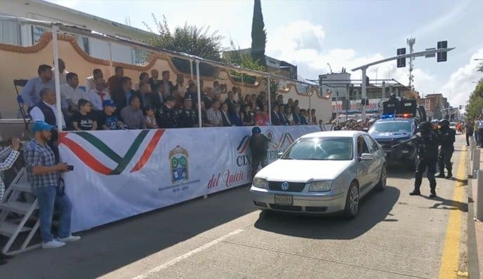 ctividades cívicas encabezadas por el Presidente Municipal, Lic. Hugo Alberto Hernández Suárez, y diversos contingentes del sector educativo, salud y empresarial.Al paso de la Escolta y Banda de Guerra de la Secretaria de Seguridad Pública Municipal a cargo del Comandante Toribio Sánchez Martínez, el contingente de seguridad realizó diversas exhibicionesEscuadrón de Fusileros, movimientos de armas y detonación de salvas.Demostración de defensa personal infantil, escuela primaria 5 de Mayo de la comunidad La Fundición.Exhibición de arme y desarme de armas de fuego tipo Bush Master y Cezca.Formación táctica del grupo de disturbio socialFormación de pirámideE intervención de vehículo infractor por parte del Grupo de Reacción.De esta manera los funcionarios de seguridad, inculcan entre la población los valores sociales, cívicos, que representan nuestra identidad como mexicanos.