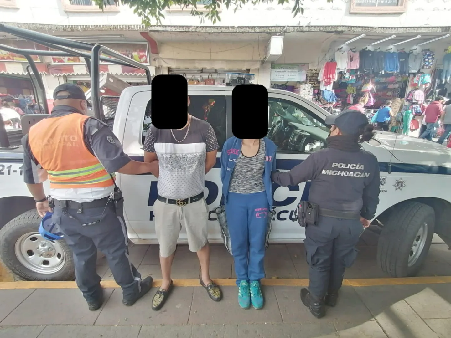 H. Zitácuaro, Mich., a 17 de enero de 2022.- Elementos de la Secretaría de Seguridad Pública municipal reciben un reporte ciudadano en el cual manifiestan que en el interior del mercado Melchor Ocampo, se encontraban dos personas sospechosas intentando comprar con billetes falsos, siendo las características de estos una mujer con pants color azul y un sujeto con playera color gris y un bermuda beige.