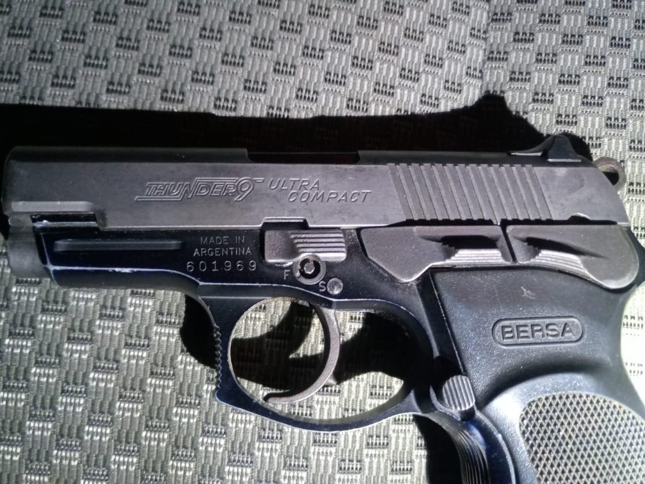 Al realizarle una inspección protocolaria, el personal policial localizó entre las pertenencias del ahora detenido un arma de fuego calibre .9 mm, así como cinco cartuchos útiles.
