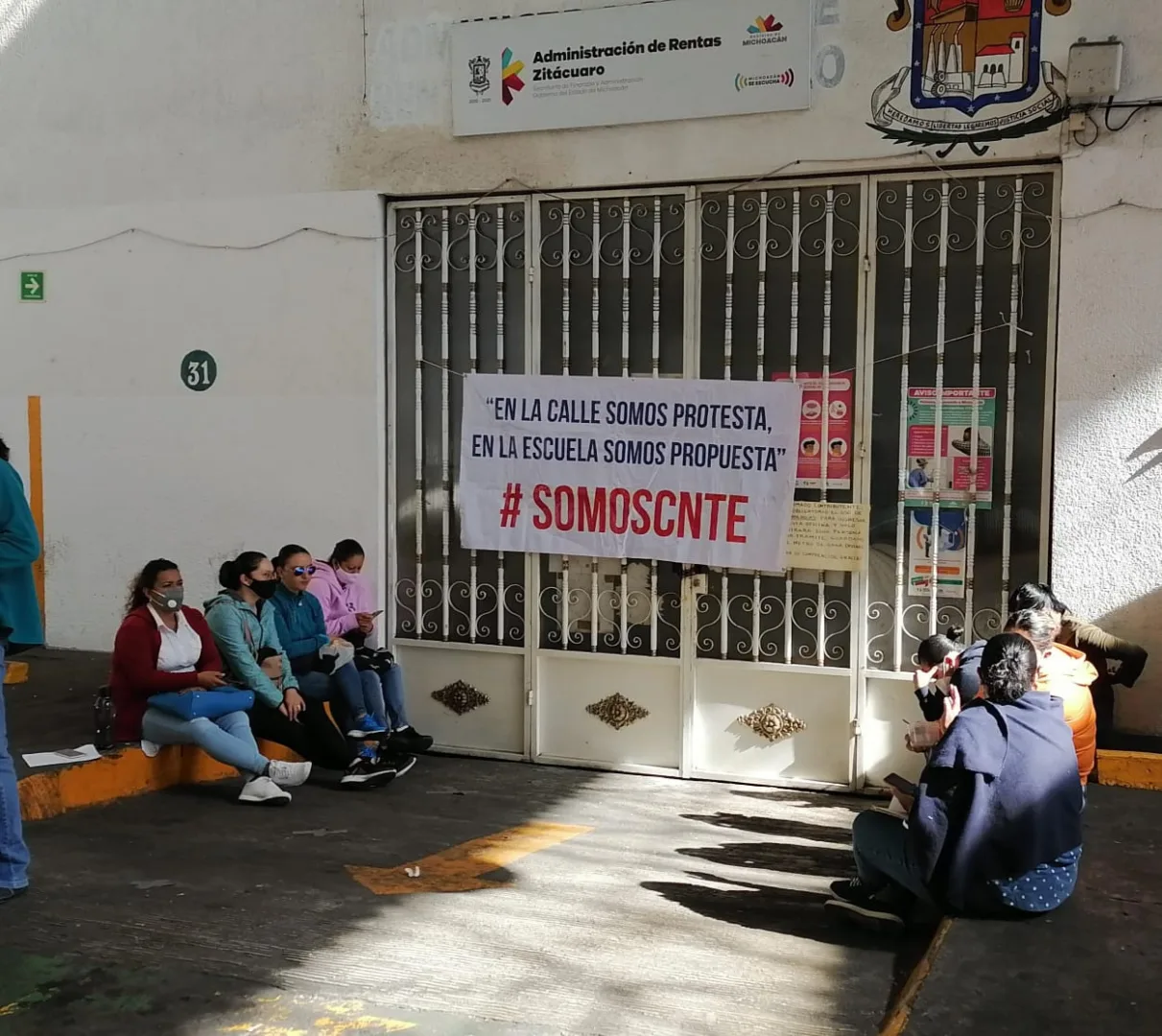 Con toma de oficina de Administración de Rentas en Zitácuaro, docentes exigieron pago de bonos pendientes
