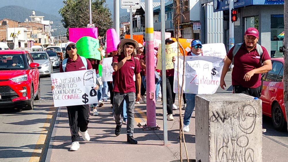 Docentes del CONAFE marchan en Zitácuaro por mejores salarios