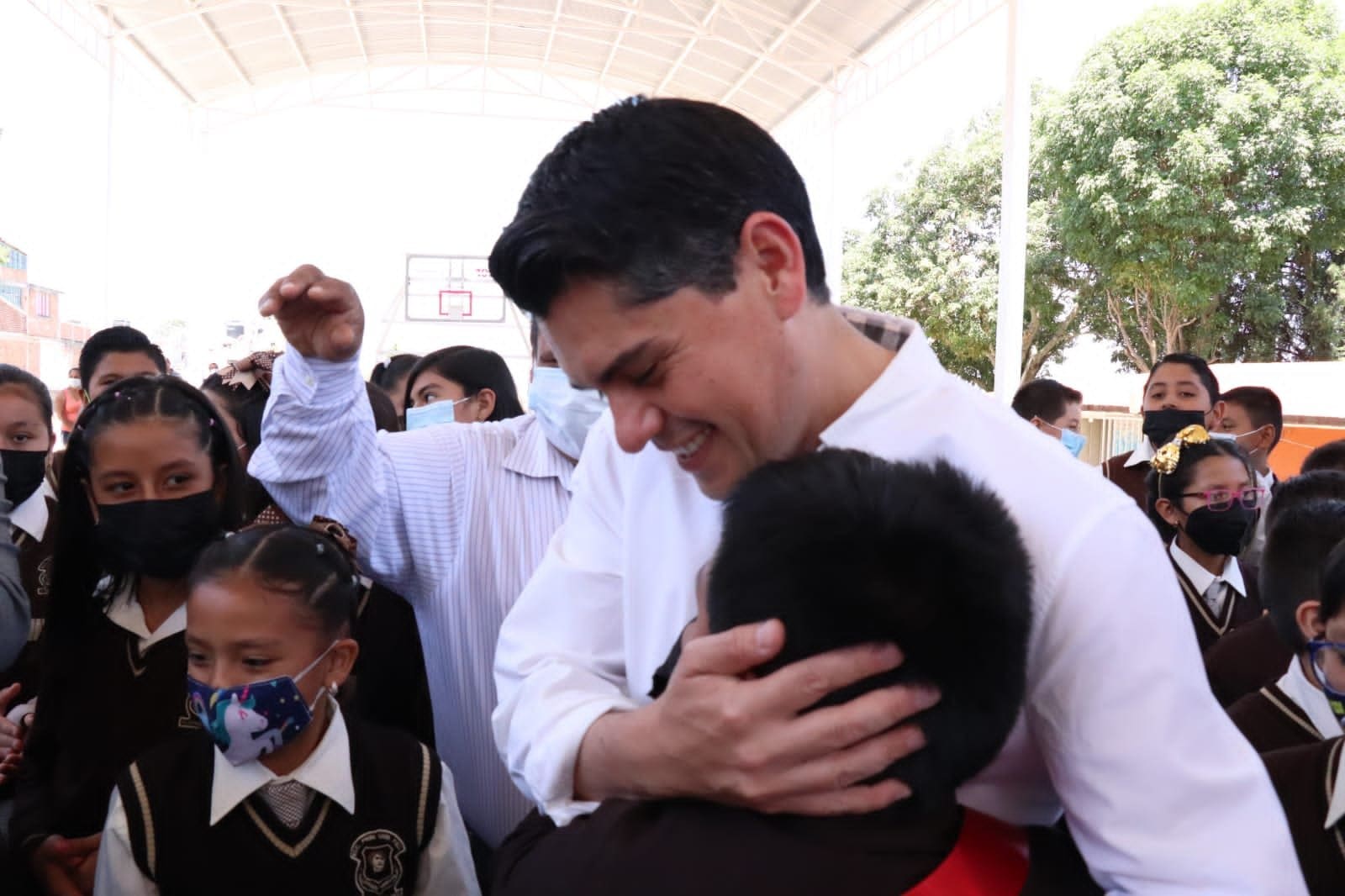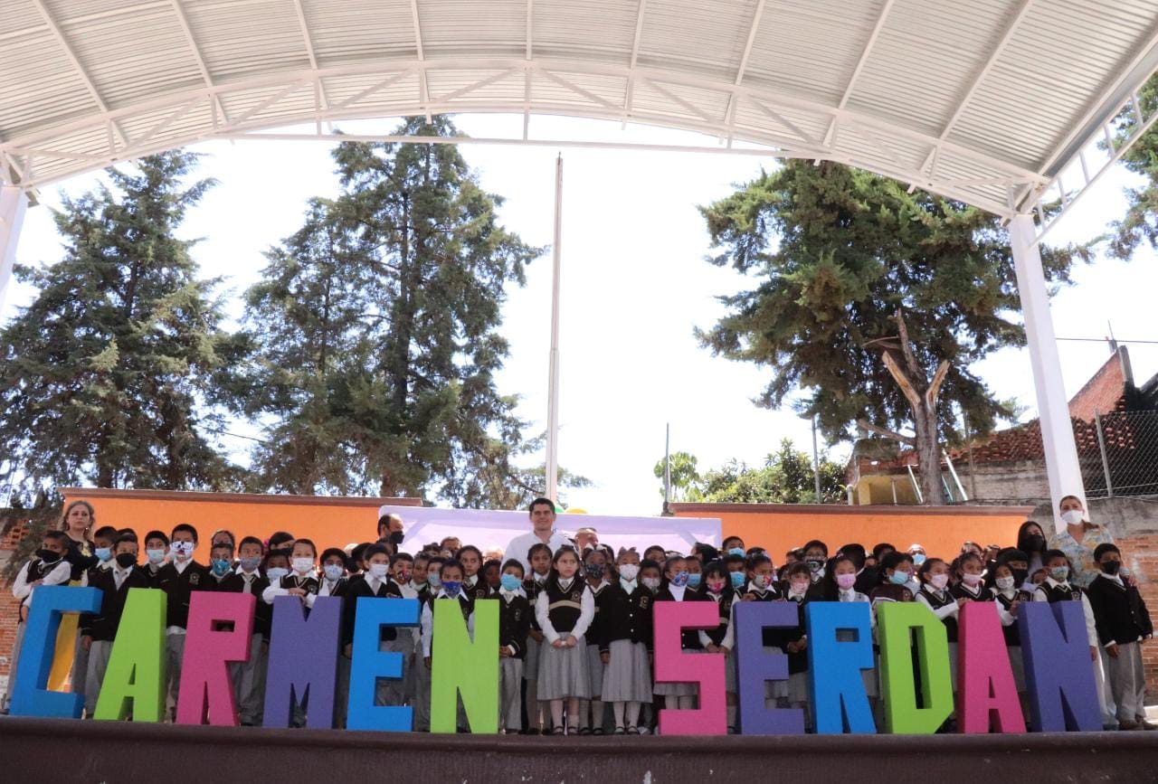 Zitácuaro, Mich., 4 de abril del 2022.- “Cumplimos nuestro compromiso con la primaria Carmen Serdán”, destacó el presidente municipal Toño Ixtláhuac durante la inauguración del domo de la cancha y patio cívico de la escuela primaria Carmen Serdán, obra educativa que fue solicitada al alcalde.