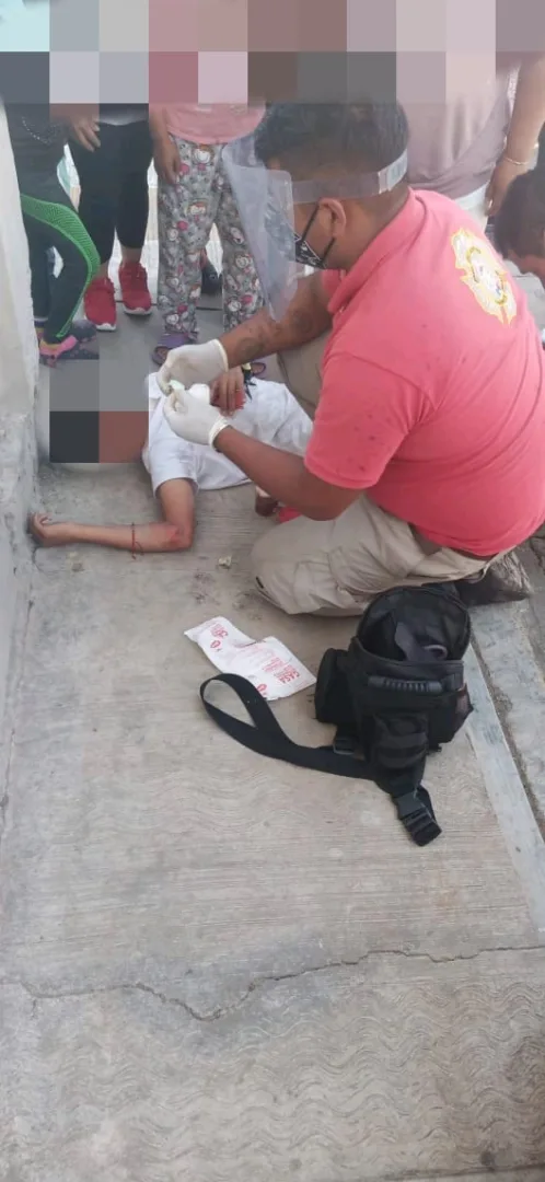 El otro menor que iba como acompañante, a la valoración de los elementos presentaba herida cortante de aproximadamente 5 centímetros en ceja derecha con hemorragia y abrasiones en todo el cuerpo.