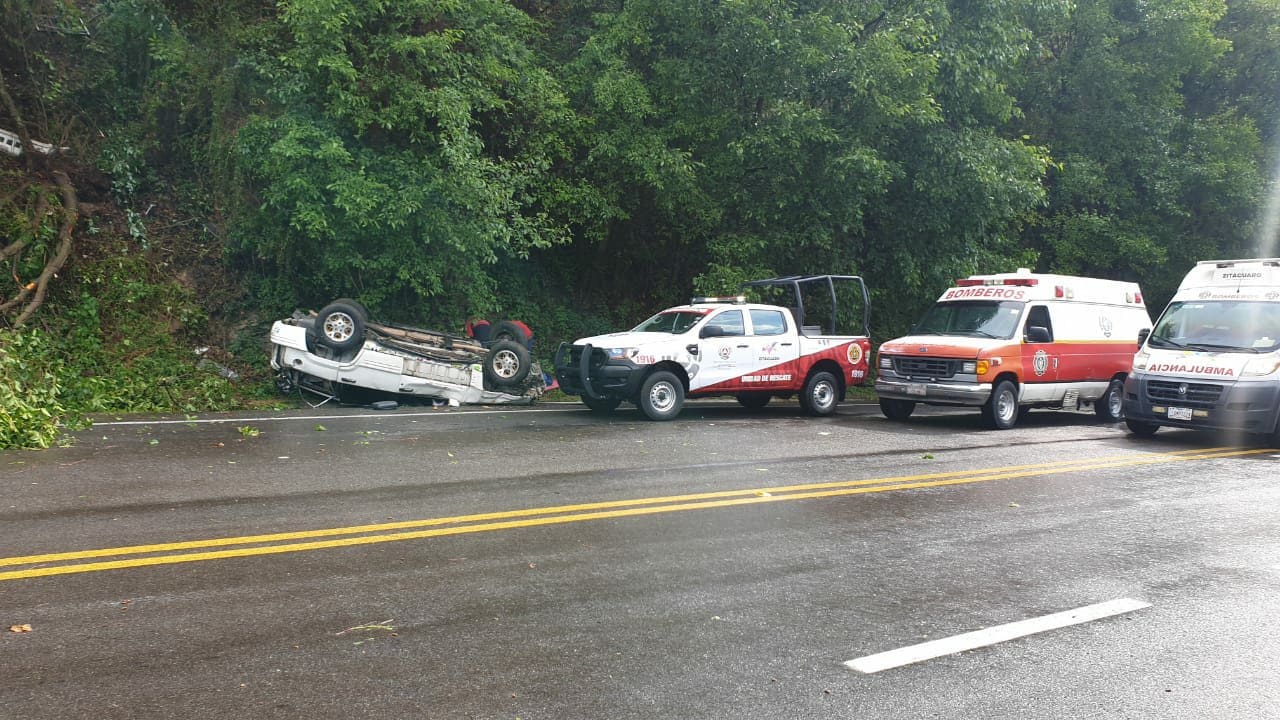 Zitácuaro. Mich. El Cuerpo de Bomberos reportó que recibió un reporte via telefónica, manifestando que se había suscitado una volcadura en la autopista Zitácuaro- Lengua de Vaca, a la altura del kilómetro 6.