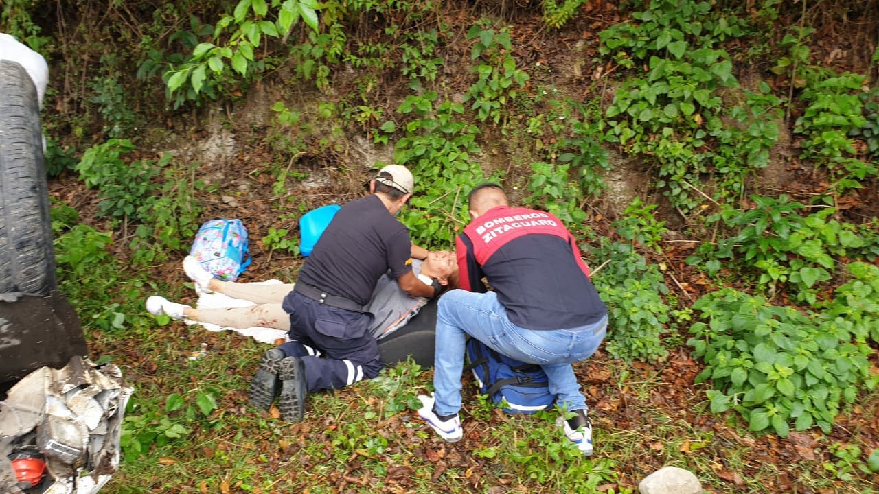 Al conductor lo acompañaba la C. “X” de 37 años, con domicilio en privada de Cuauhtémoc, a la valoración de los elementos presenta posible fractura en húmero lado derecho, más policontundido, se inmoliza en el lugar, posteriormente se aborda a la unidad médica de bomberos, para trasladarlo al hospital regional a recibir atención médica.