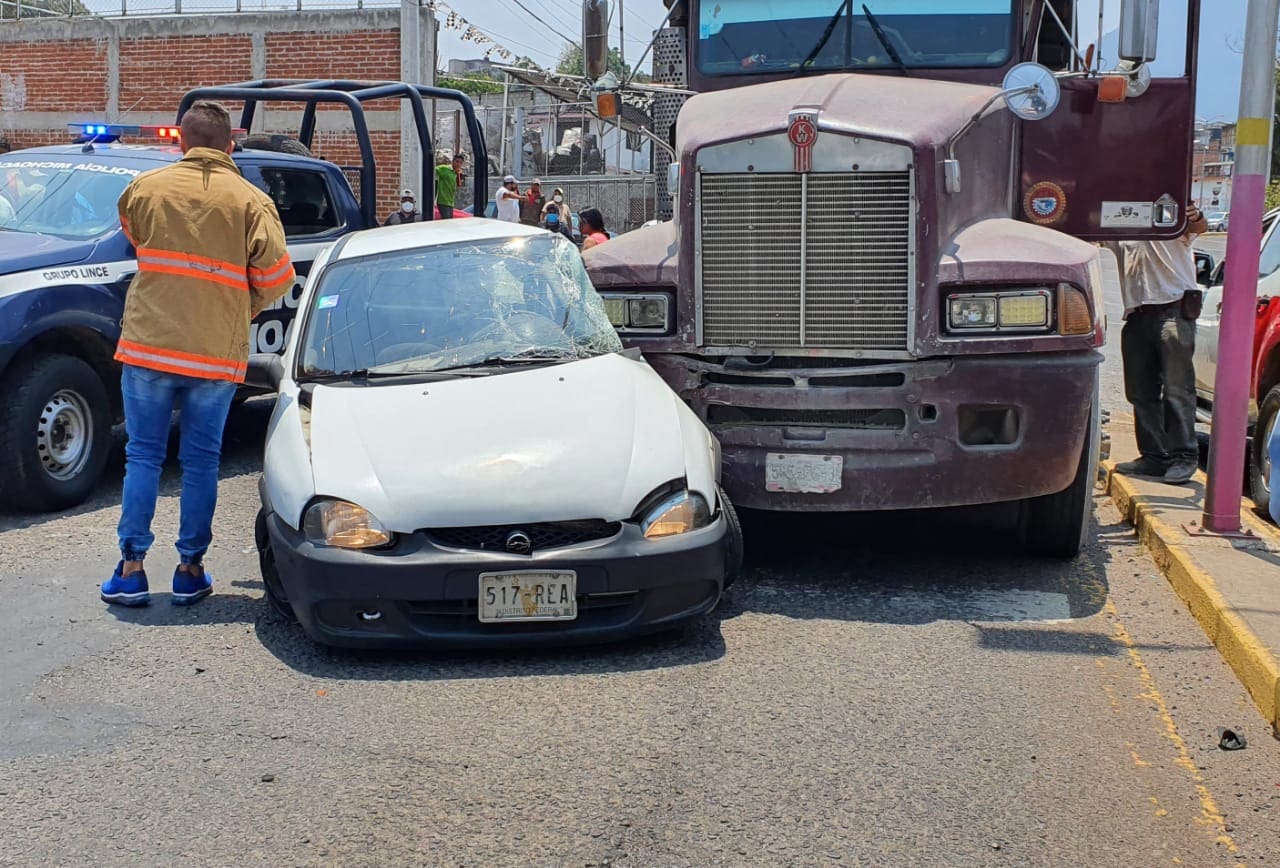 El otro vehículo involucrado es un camión tipo volteo, color café, sin placas de circulación, del cual se desconocen los datos del conductor; sobre lo sucedido comenta el conductor del Chevy que iba a retornar, cuando el camión lo impacto.