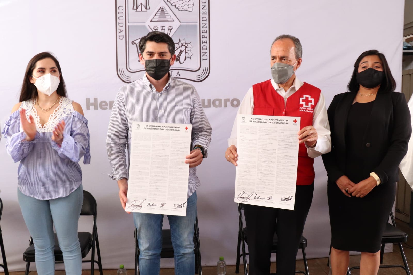Zitácuaro, Mich., 1 de abril del 2022.- La tarde de este viernes, el Ayuntamiento de Zitácuaro, encabezado por el alcalde Toño Ixtláhuac llevó a cabo la firma de un convenio de colaboración con la Cruz Roja, el cual compromete a ambas partes a eficientar y ampliar los servicios y atenciones que se prestan a quienes habitan en este municipio.