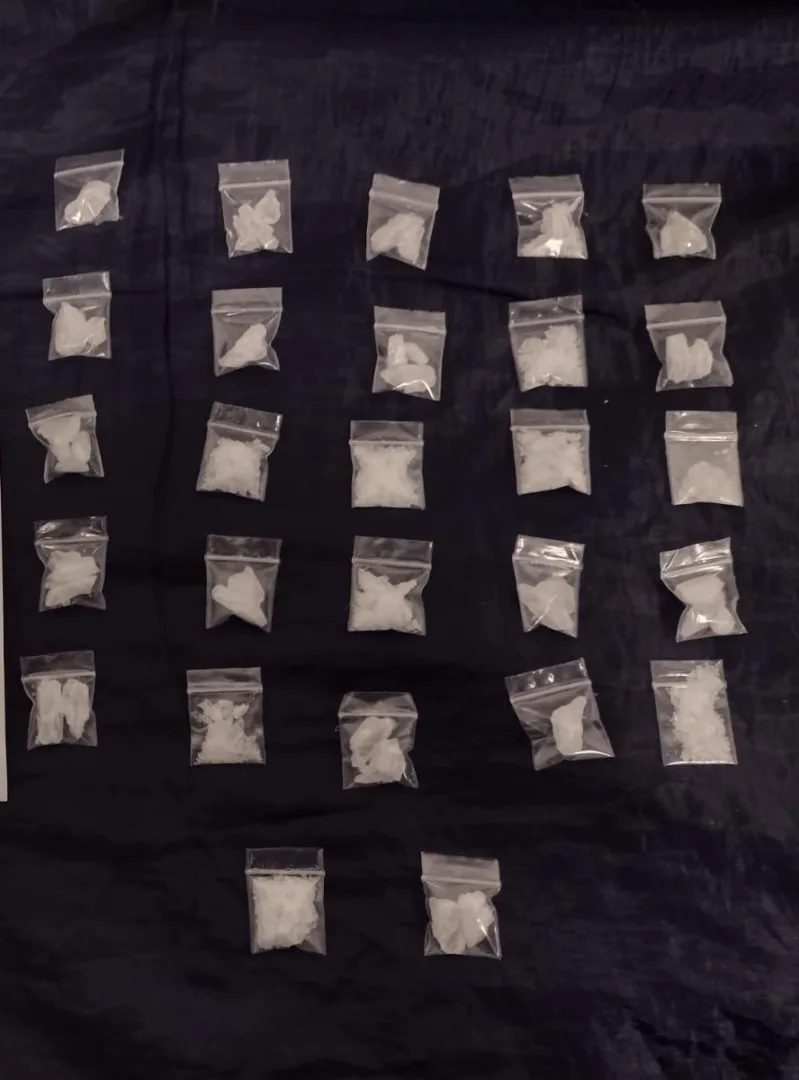 Posteriormente se procedió a realizarle una inspección, donde se le localizó entre sus pertenencias 27 envoltorios con sustancia granulosa, con las características propias de la metanfetamina, razón por la que fue trasladado ante la autoridad encargada de determinar su situación jurídica.