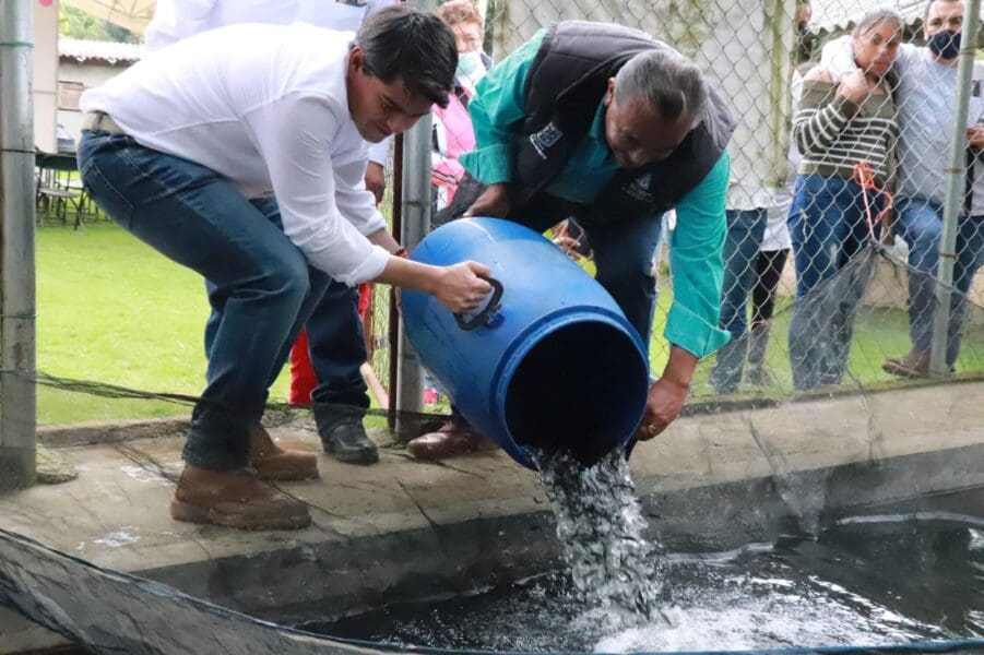 Entrega gobierno de Toño Ixtláhuac 100 mil crías de trucha arcoíris a productores acuícolas