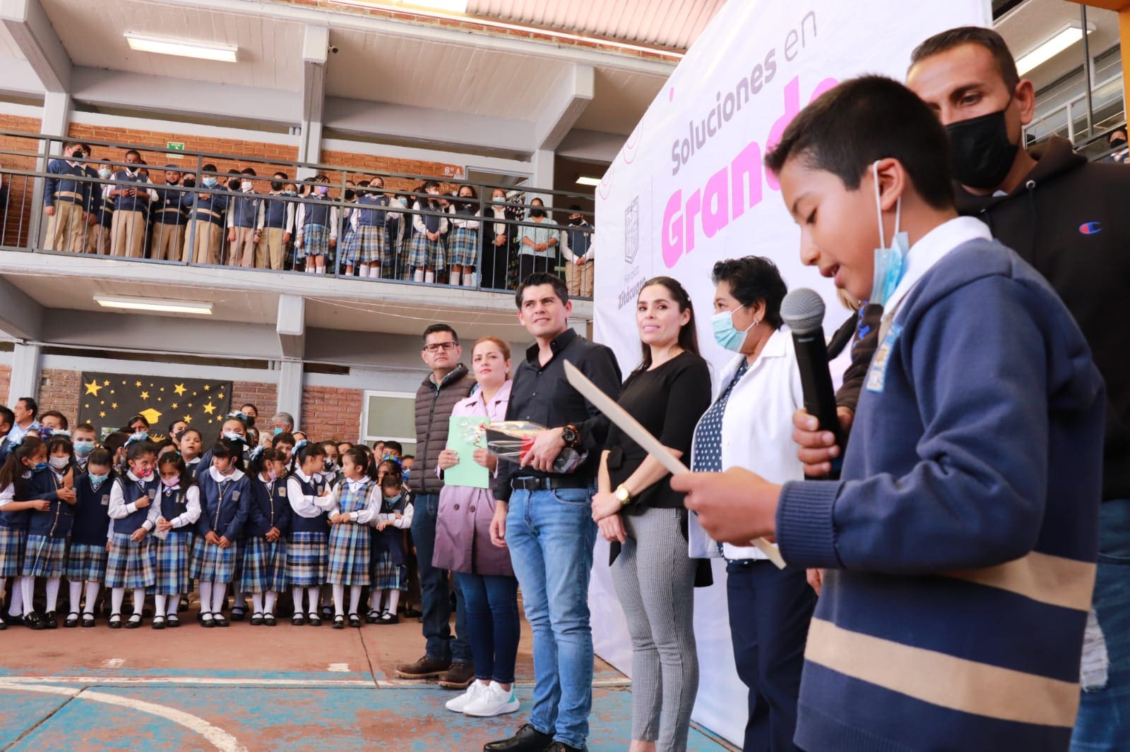 Entrega Toño Ixtláhuac aula de usos múltiples y comedor estudiantil en la primaria Eva Sámano