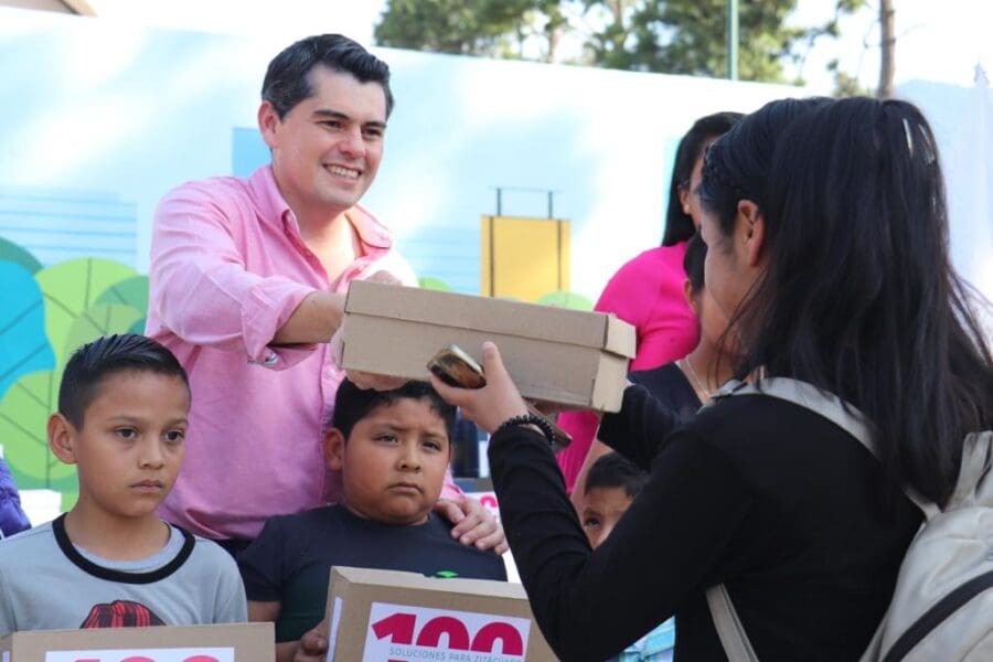Zitácuaro, Mich., a 4 de noviembre del 2023.- Dando continuidad al programa Regreso a Clases 2023, Toño Ixtláhuac entregó más de 100 pares de calzado escolar a menores estudiantes de distintas escuelas de nivel básico del municipio.