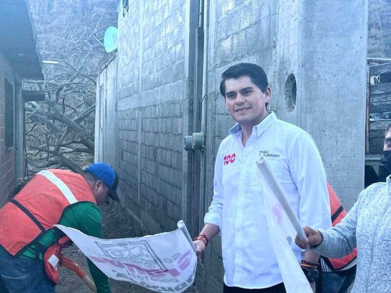 Entrega Toño Ixtláhuac obras de alumbrado público y red de agua potable en Timbineo de los Contreras.