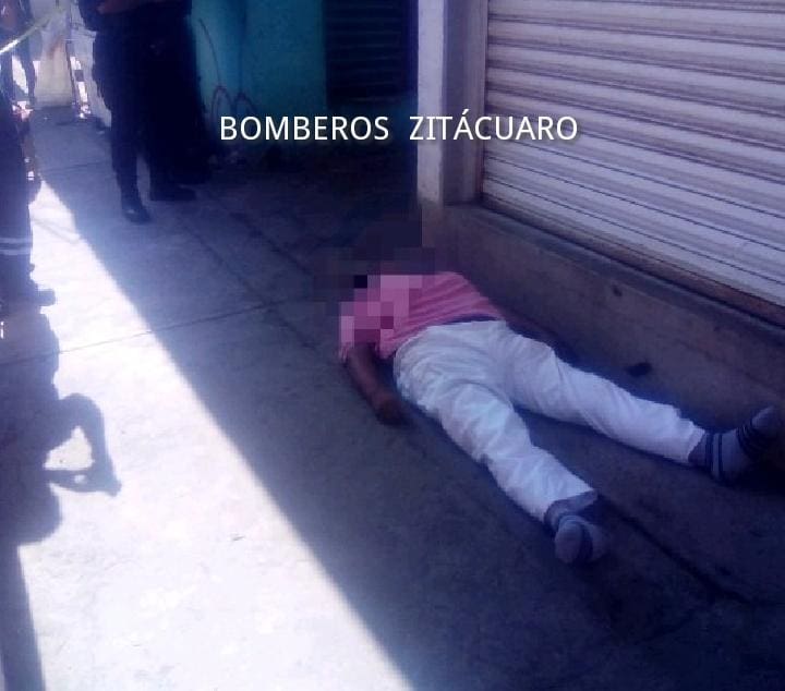 Al arribar a la ubicación ya se encontraba personal de la Policía Michoacán, en un pasillo del interior del mercado, se visualiza un masculino en posición supina dorsal, de aproximadamente 50 años de edad, 1.60 metros de altura, tez morena, complexión robusta, cabello negro corto, bigote entre cano, vestía una playera color rosa, pantalón blanco y calcetines gris con negro.