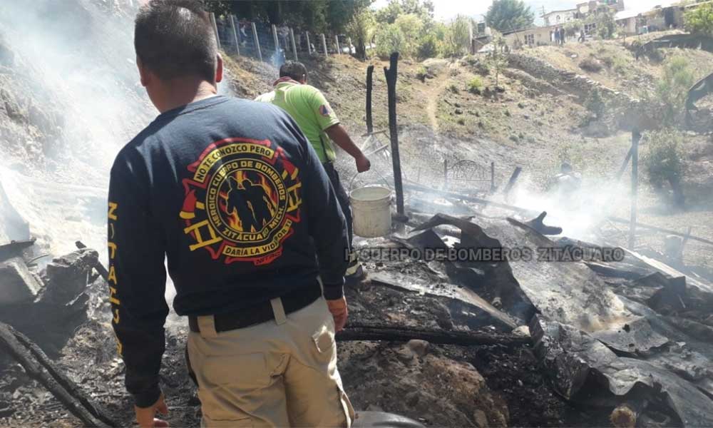 Zitácuaro. Mich.- A través de un reporte vía radio-comunicación de la Policía Michoacán, se informó al cuerpo de bomberos, que se encontraba un incendio de casa habitación sobre el camino que conduce a la tenencia de Nicolás Romero, dirigiéndose al lugar las unidades de bomberos.
