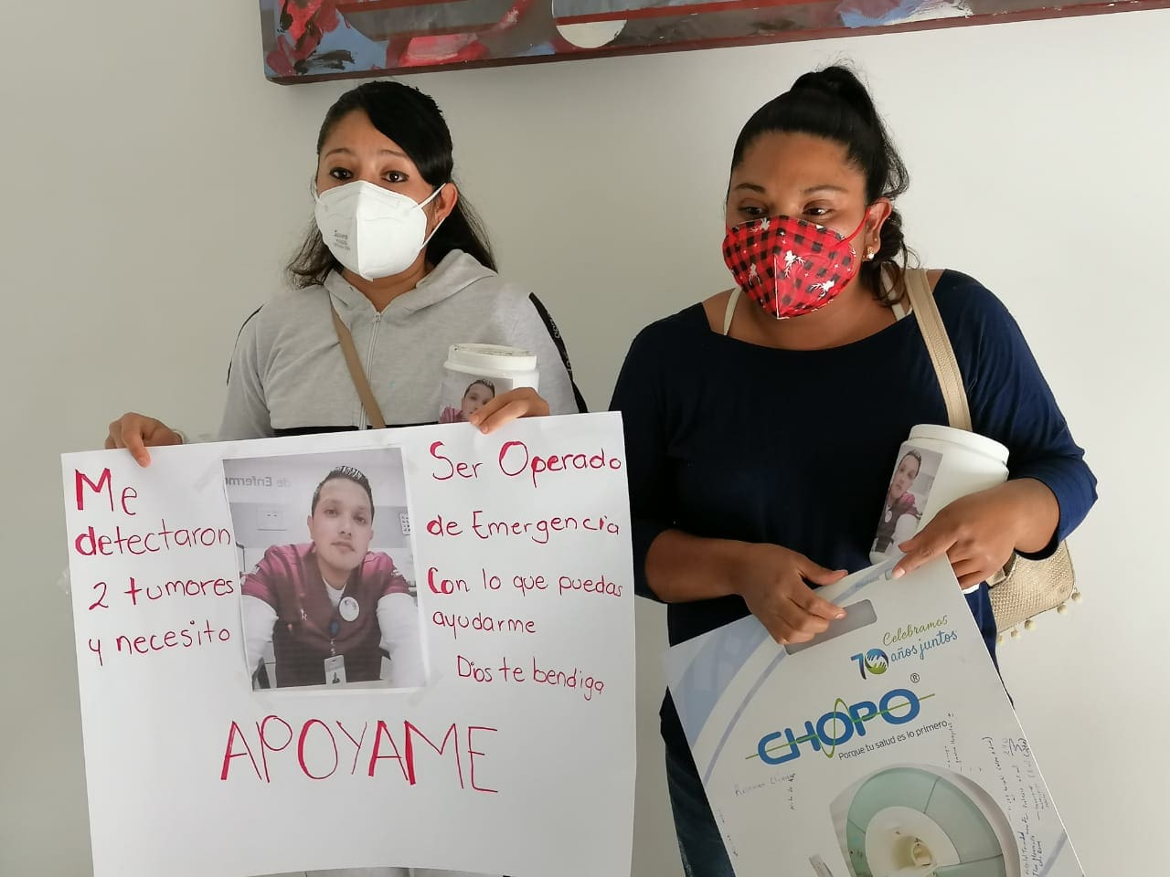 Sus hermanas con Anel Flores Gabriel y Betsabé Gabriel Díaz, manifestaron su sentir para poder solicitar apoyo de recursos económicos para la operación del joven Gerardo Flores Gabriel, un joven enfermero que hoy vive una situación difícil al tener dos tumores que afectan su salud, su recuperación depende de una cirugía programada para el próximo 26 de diciembre.
