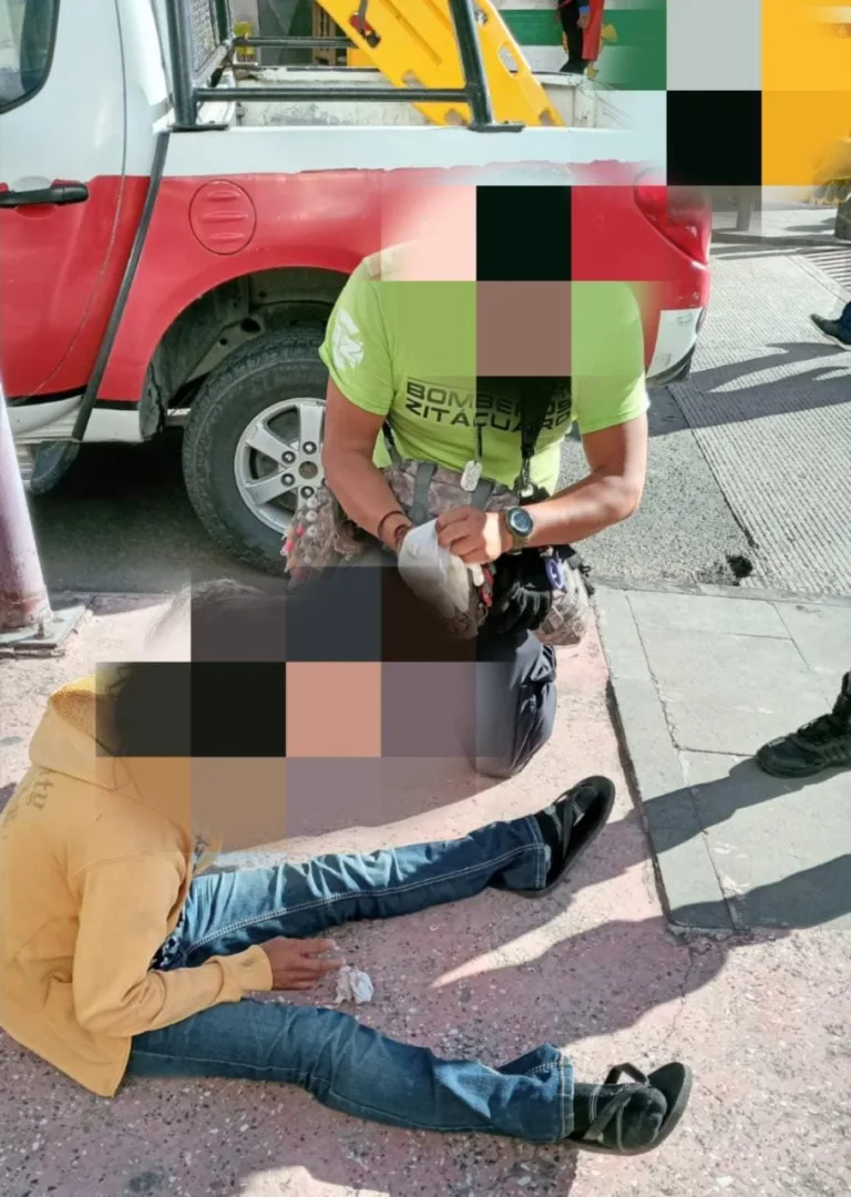 Zitácuaro. Mich. El Cuerpo de Bomberos y Protección Civil, recibió una llamada telefónica reportando una persona lesionada por caída de su propia altura entre las calles Avenida Revolución esquina con José María Coss.