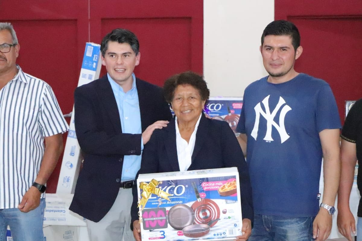 -El alcalde entregó aparatos electrónicos y electrodomésticos a los festejados.