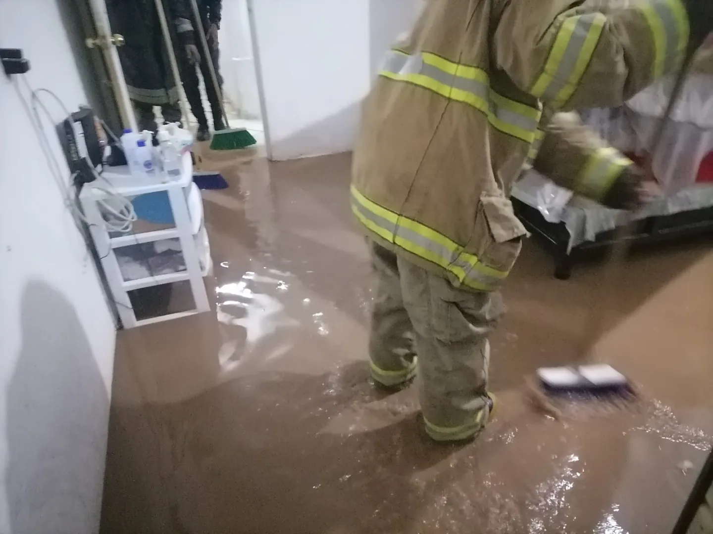 Finalmente, los bomberos acudieron a un domicilio en la colonia Fovissste a la altura de la base de las combis, para realizar maniobras para desahogo del agua, que había afectado a la vivienda como resultado de la lluvia de esta tarde.