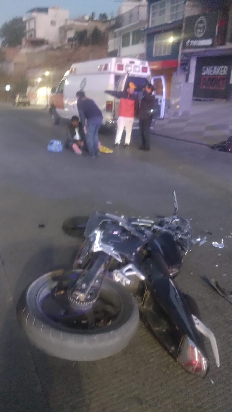 De acuerdo con el parte oficial de la institución, al arribar al lugar de los hechos a bordo de la unidad 09, los elementos de rescate localizaron al conductor de la motocicleta con lesiones visibles. El personal de bomberos notificó que el paciente presentaba dolor intenso en la zona de la pelvis y heridas abrasivas en ambas extremidades inferiores.