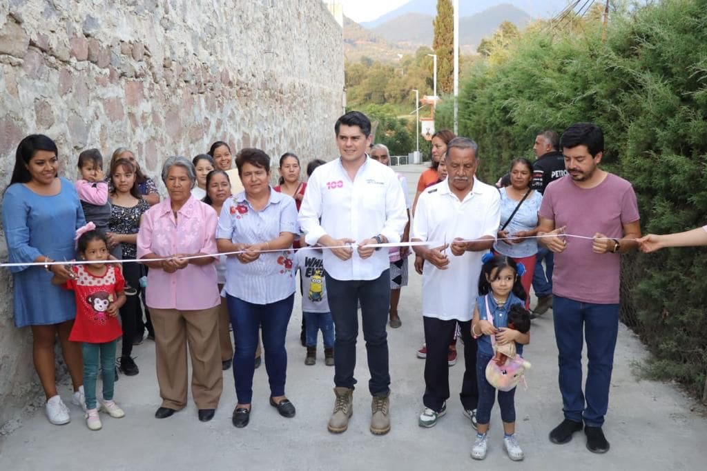 Zitácuaro, Mich., a 21 de junio del 2023.- Toño Ixtláhuac entregó el primer resultado de su iniciativa #Ruta100. Se trata de un andador pavimentado en la tenencia de San Juan Zitácuaro, que beneficia a 20 familias directamente.