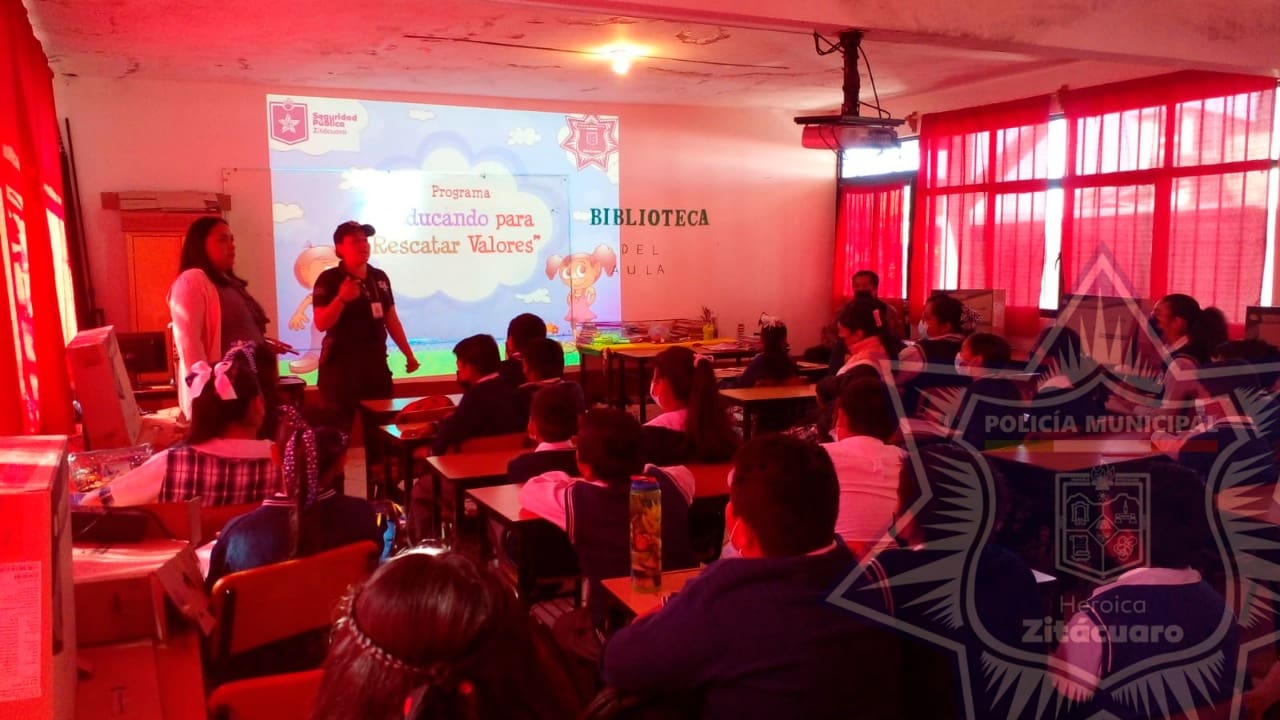 Dicho taller se llevó a cabo con el tema de los valores, impartido al alumnado de la escuela Primaria Melchor Ocampo de la comunidad de Pueblo Nuevo, por parte de elementos del área de prevención del delito en coordinación con el departamento de PAMAR.