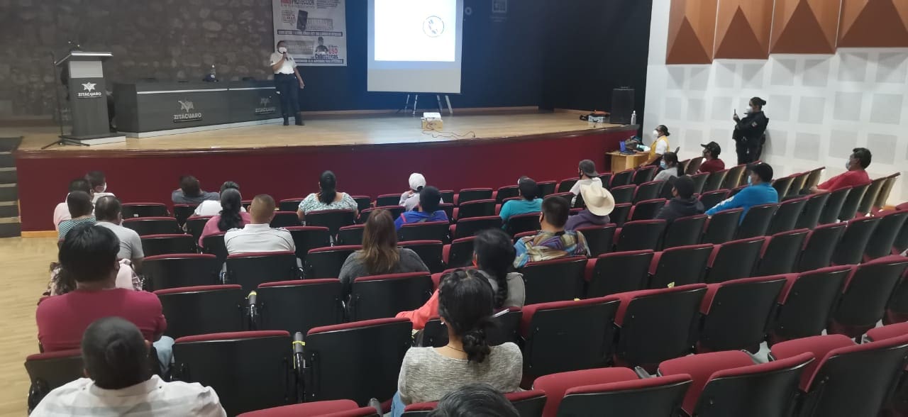 ZITÁCUARO, Mich., 11 de marzo del 2021. – La Secretaría de Seguridad Pública Municipal a cargo del Comandante Ing. Rafael Hernández Albarrán, a través del área de Prevención del Delito impartieron esta mañana una conferencia dirigida a los comerciantes de la Unión Honor y Justicia de la zona centro.