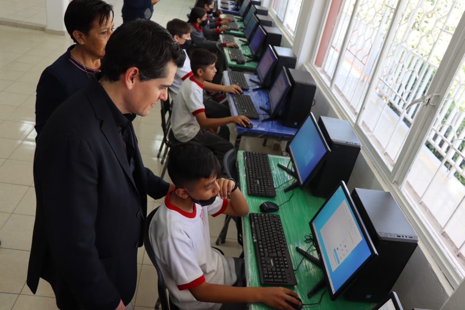 Inaugura Toño Ixtláhuac aula digital en escuela Niños Heroes.