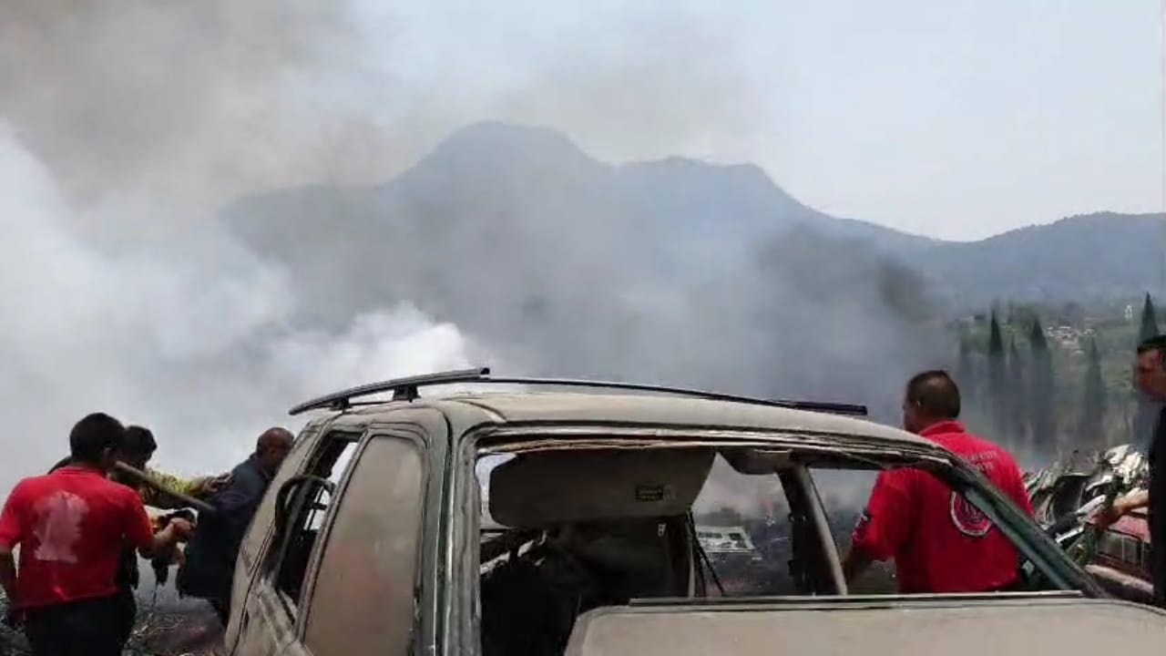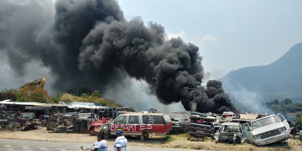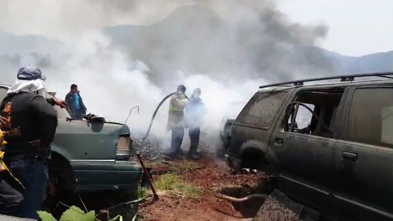 Incendio consume dos vehículos y afecta un 20% de un deshuesadero en Zitácuaro