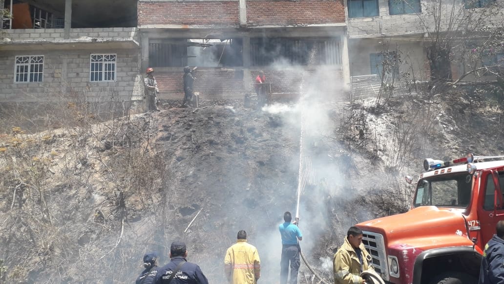 Incendios de pastizal afectan metros de baldíos y parte de una vivienda en Zitácuaro