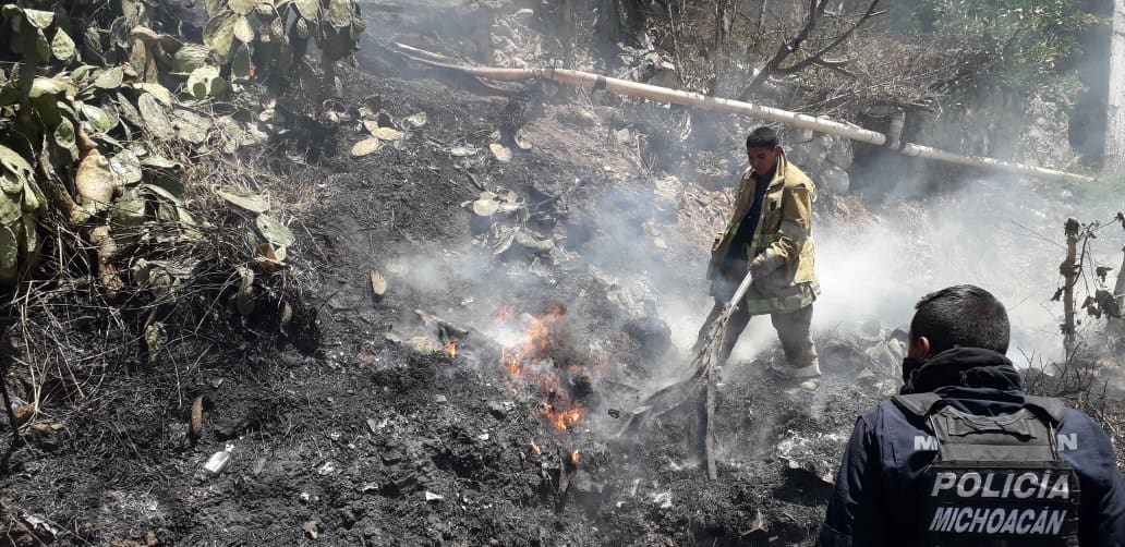 Posteriormente acudieron al llamado de la Policía Michoacán, manifestando que en la carretera federal Zitácuaro-Morelia, como referencia frente al restaurante Los Olivos, se estaba suscitando un incendio de pastizal dirigiéndose al lugar la unidad, al llegar se confirma la novedad, procediendo de inmediato en conjunto con vecinos las maniobras de control y combate de incendios, sofocandolo en su totalidad, resultando afectados 20 metros cuadrados aproximadamente.