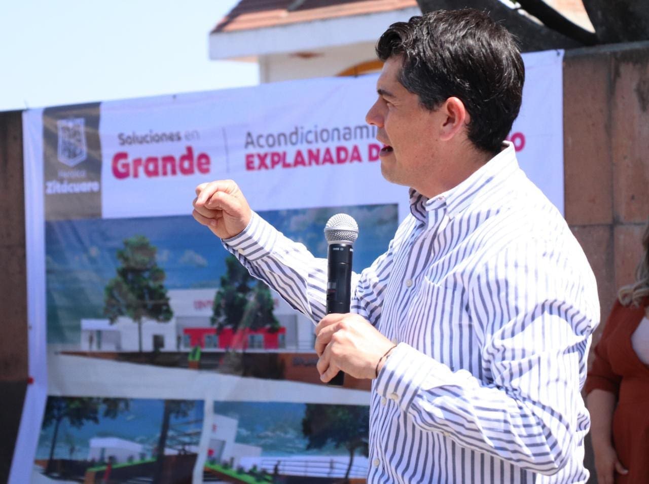 Zitácuaro, Mich., 18 de abril del 2022.- El alcalde Toño Ixtláhuac arrancó oficialmente la remodelación de la explanada del actual Centro de Convenciones, Suprema Junta Nacional Americana, donde su gobierno proyecta construir el primer Centro Expo de Zitácuaro.