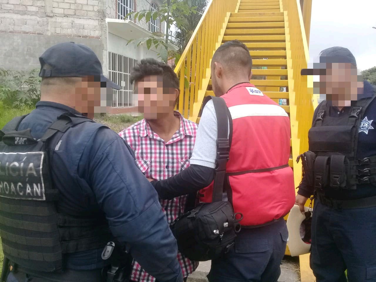 Derivado de este hecho, agentes de la Policía Michoacán se trasladaron hasta la colonia Pueblo Nuevo, sitio donde se implementaron protocolos de proteccion, lográndose rescatar y asegurar al joven.