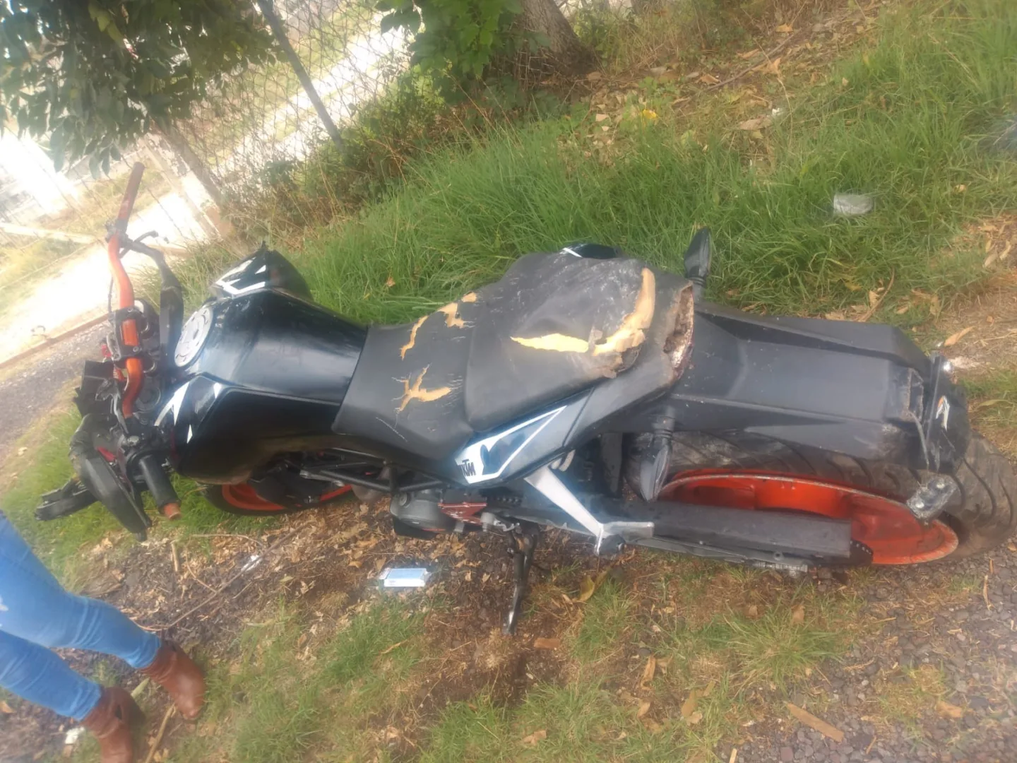 La motocicleta en la que viajaba el joven es una KTM 200 de color naranja con negro, sin placas. Se desconocen las causas que provocaron el derrape del vehículo.