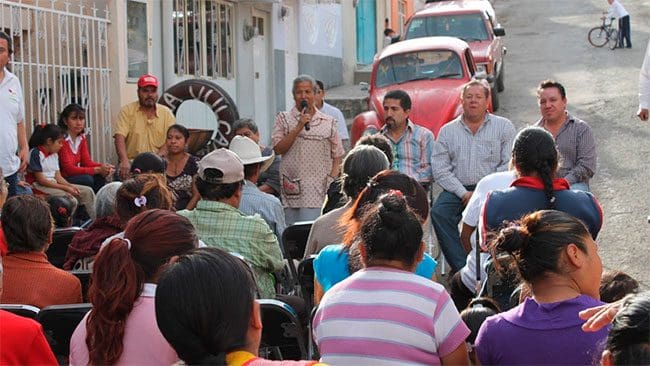 Al hacer uso de la palabra Campos Ponce, les dijo que él va a donde lo inviten, sólo así sabe de las necesidades de la población, recordó el gran recibimiento que le brindaron los vecinos en campaña, y les manifestó que ve en ellos la disposición de trabajar juntos y se comprometió a la rehabilitación de la calle.