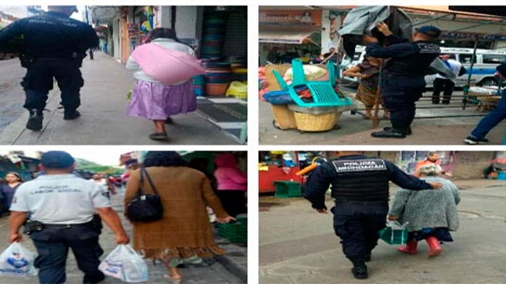 Desde levantar una cortina, ayudar a los adultos mayores a bajarse del transporte público, aligerar la carga de sus manos, ayudarlos a cruzar la calle, son solo algunas de las acciones del grupo de Labor Social que la Policía Michoacán ha puesto a disposición de la ciudadanía en general.