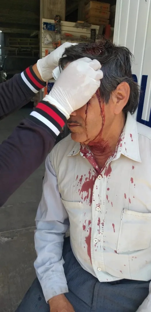 Se trata de un persona de 63 años de edad, con domicilio antes mencionado ,el cual fue lesionado con una piedra,que se presume es su vecino, por lo que fue valorado por los elementos de auxilio presentando herida cortante de aproximadamente 2 centímetros, en la parte frontal del cráneo, quién no ameritó ser trasladado a un noscomio.