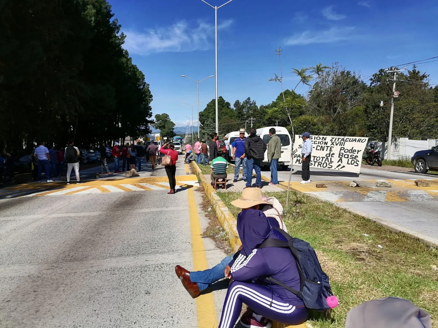 Maestros de la CNTE-SNTE Poder de Base en el municipio de Zitácuaro, iniciaron el bloqueo de la carretera Zitácuaro-Toluca a la altura del Conalep, con el objetivo de exigir al gobierno estatal el pago de 4 quincenas pendientes.
