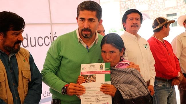 Zitácuaro, Michoacán.- Mazahuas y otomís de esta región fueron beneficiados con la entrega de recurso por medio del programa para la Producción y Productividad Indígena para actividades agrícolas y pecuarias que otorgó el ayuntamiento en coordinación con la Comisión Nacional para el Desarrollo de los Pueblos Indígenas (CDI) en la plaza cívica Lic. Benito Juárez.