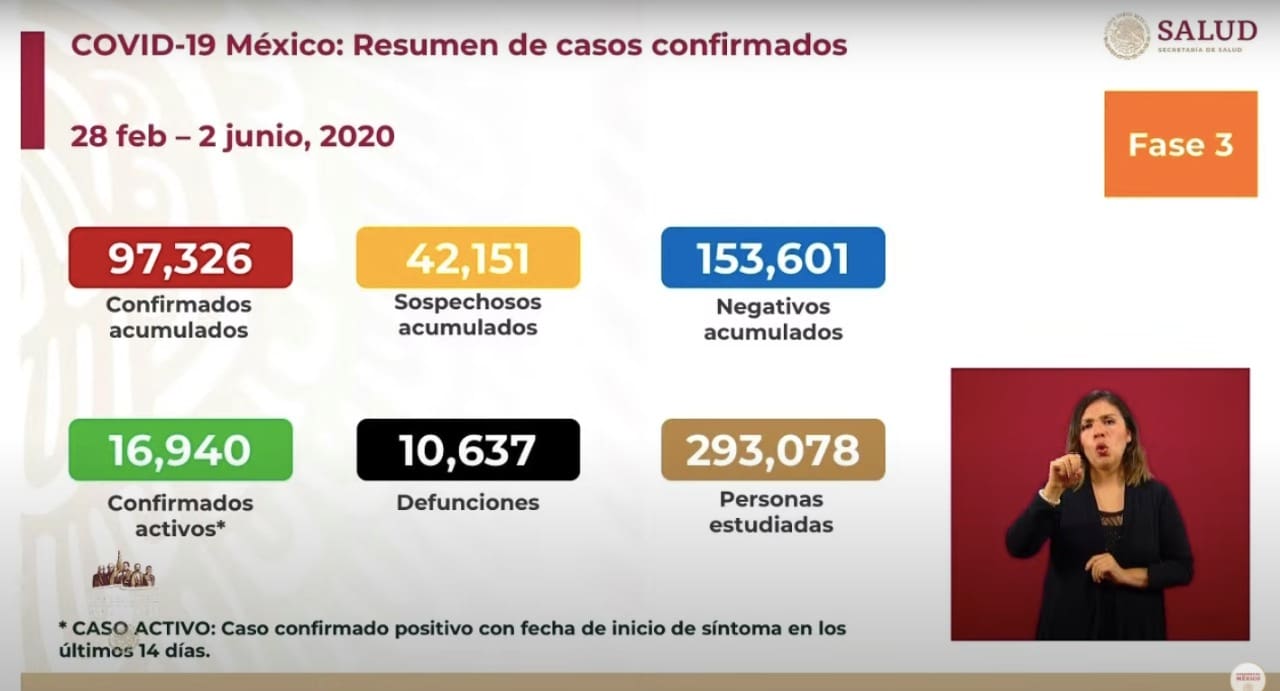 El doctor José Luis Alomía informó que en #México ya se suman 97,326 casos de #coronavirus, mientras que el número de defunciones llegó a los 10,637.
