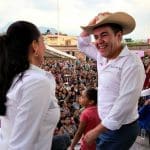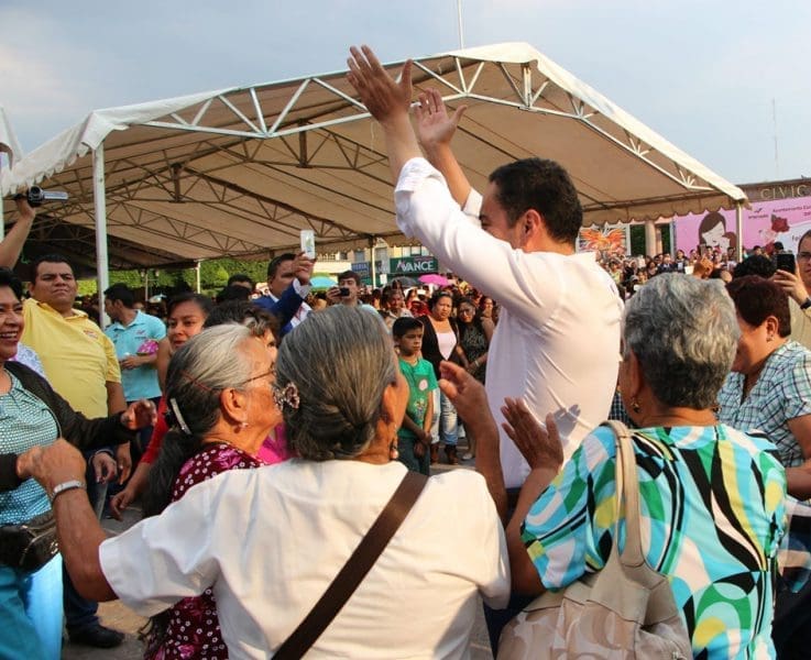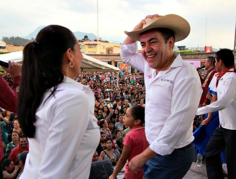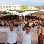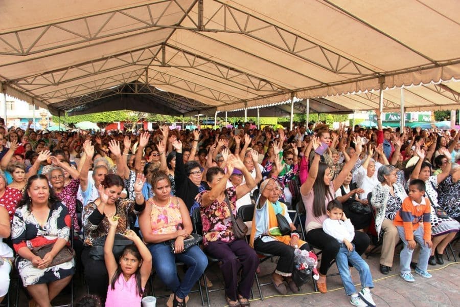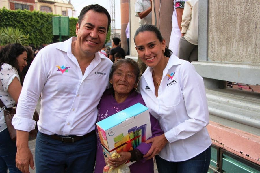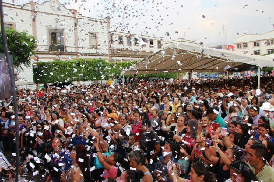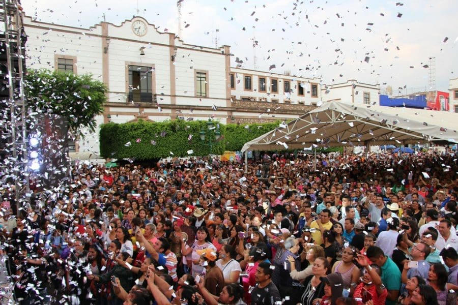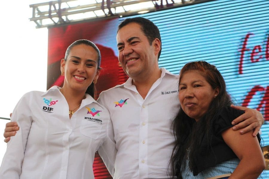 Zitácuaro, Michoacán.- Ante una plaza Benito Juárez abarrotada por miles de mamás zitacuarenses, el presidente municipal Carlos Herrera Tello acompañado de Rocío Beamonte Romero, titular del sistema DIF Michoacán y Rosario Jasso Briseño, presidenta del DIF municipal, festejó con ellas en el marco del pasado 10 de mayo.