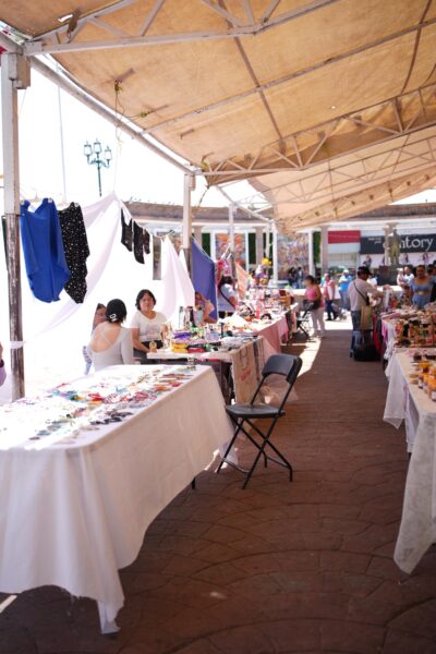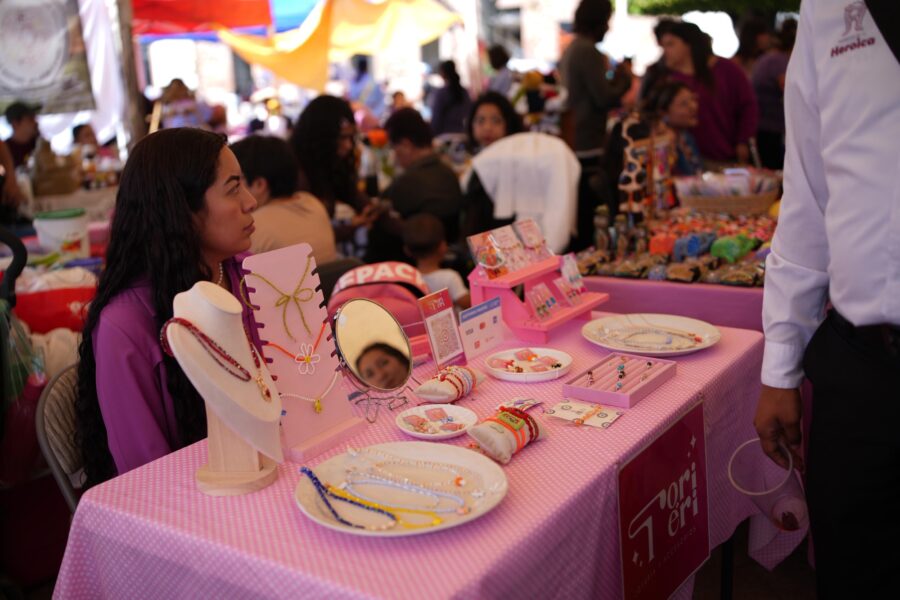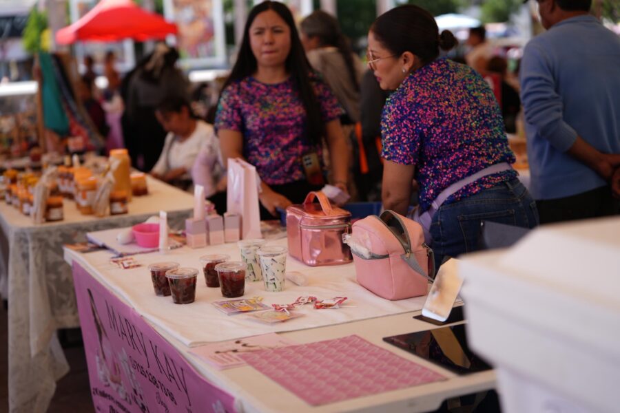 Más de 65 mujeres emprendedoras de Zitácuaro participan actualmente en el Corredor “Crecemos Juntas, Nos Movemos Juntas”, un espacio de comercialización de productos 100% hechos a mano que se instaló en la plaza principal (Jardín Central) de la ciudad.
