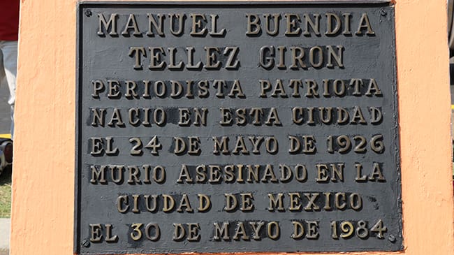 Manuel Buendía Tellezgirón nació en Zitácuaro, Michoacán, el 24 de mayo de 1926, y fue asesinado el 30 de mayo de 1984 en la Ciudad de México. Manuel Buendía escribía en La columna Red Privada, publicada por el periódico Excelsior de la Ciudad de México y ésta era reproducida por alrededor de 60 periódicos mexicanos.