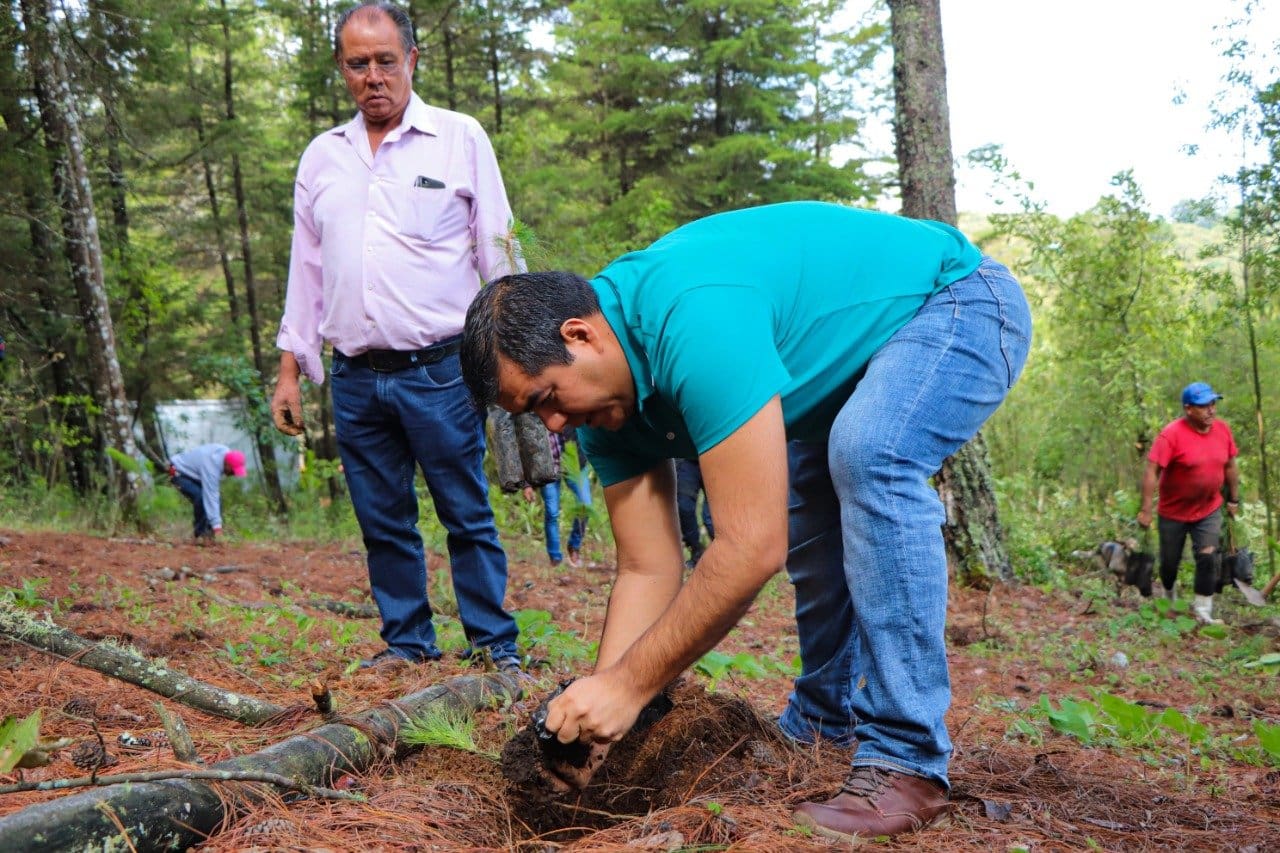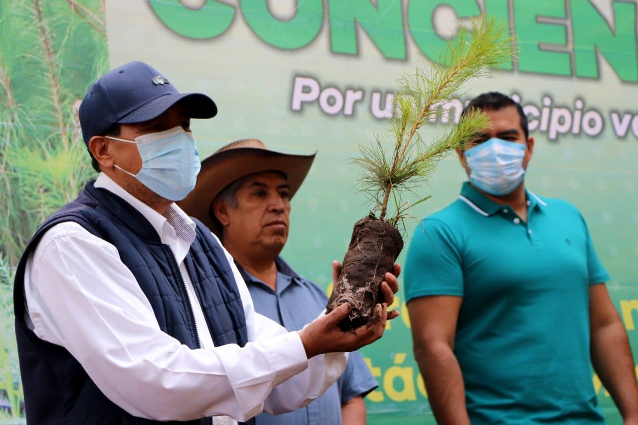 En la jornada de este sábado, el presidente municipal, acompañado del delegado regional de COFOM, Efraín Sánchez Posadas; Rodolfo Velázquez, titular del departamento de Ecología, ente otras autoridades municipales y ejidales, encabezó la plantación en este punto, acompañado de empleados municipales y voluntarios que se sumaron a la acción emprendida por la administración municipal, cuya meta es llegar a las 30 mil especies sembradas del programa.