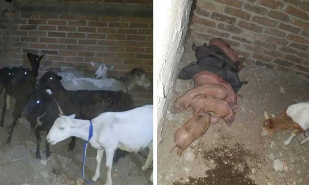 También fue asegurada una camioneta de la marca GMC y un Volkswagen con reporte de robo, así como 13 chivos y 13 cerdos, propiedad del agraviado.