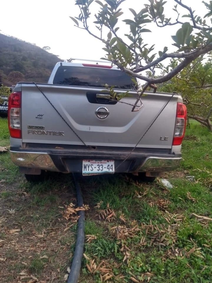 ZITÁCUARO, Mich., 12 de junio de 2019.- Elementos de la Policía Michoacán, durante recorridos de prevención del delito y vigilancia en una huerta de guayaba a la altura de La Palma de San Miguel Chichimequillas, localizan una camioneta con reporte de robo, la cual es asegurada y puesta a disposición de la Fiscalía Regional de Justicia.